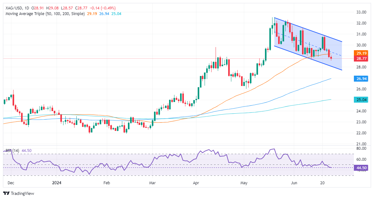 汇通财经APP讯——周三(6月26日),现货白银再度遭受打击,目前跌至28.70美元/盎司附近。FXStreet分析师Christian Borjon Valencia最新撰文,对银价技术前景进行分析。
