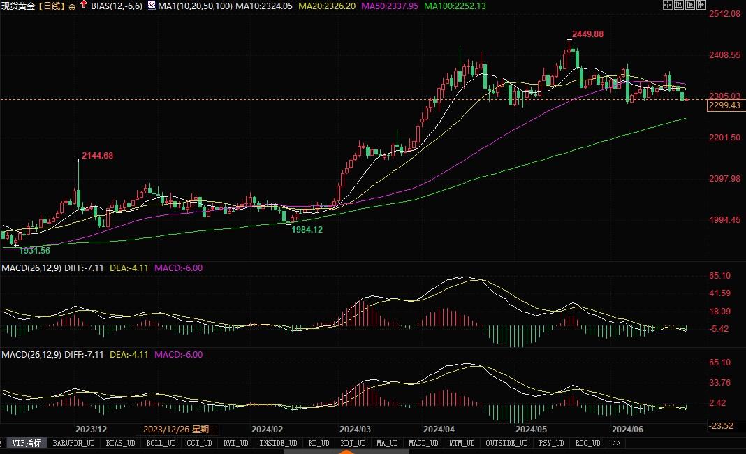现货黄金报2299.31美元/盎司