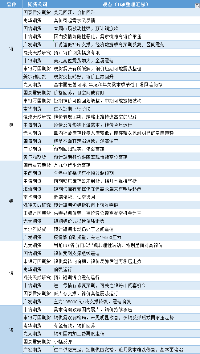 标题:期货公司观点汇总一张图:11月23日有色系(铜、锌、铝、镍、锡等)
