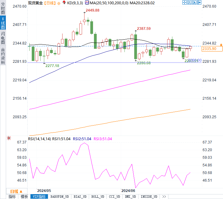 现货黄金价格在本周的稳定表现,反映了市场对黄金的持续信心。Saxo Bank商品策略主管Ole Hansen指出,金价的稳定显示出市场对黄金的坚定信心,目前尚未出现大规模的对冲基金平仓现象。他进一步分析,只要黄金价格保持在2200美元/盎司以上,市场就不太可能出现剧烈波动。今年5月,黄金价格一度攀升至历史新高2449.88美元/盎司,这一涨幅得益于降息预期、经济刺激措施以及地缘政治的紧张局势等多重因素的共同推动。