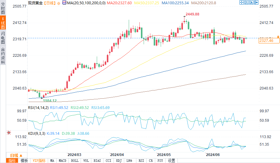 现货黄金在亚洲时段最低触及2318.94美元后小幅反弹,盘中报2327.80美元/盎司,涨幅0.02%。
