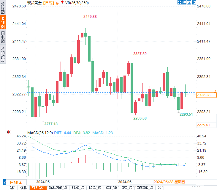 现货黄金价格以轻微的跌势收盘,尽管在美国PCE通胀数据发布后一度触及日高,但最终月度跌幅仅为0.10%。值得关注的是,2024年上半年黄金累计上涨超12.78%,显示出黄金在不确定性增加的市场环境中保持了其吸引力。