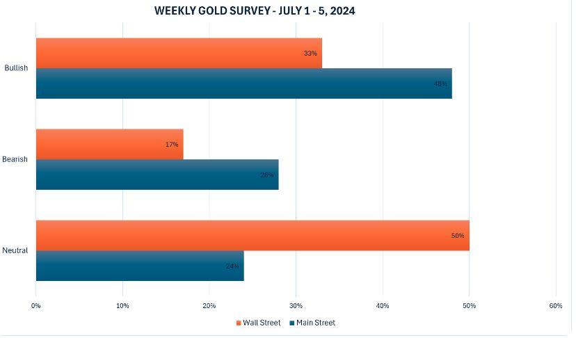 与此同时,散户投资者的投票结果也显示出类似的分歧。在Kitco在线投票中,共有178名主街投资者参与。其中,86名投资者,占48%,预计下周黄金价格将上涨;50名投资者,占28%,预期黄金价格将下跌;剩余的42名投资者,即24%,认为价格在接下来的一周将继续横盘整理。