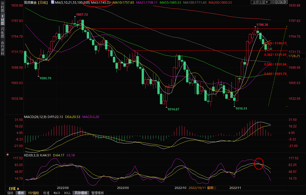 本交易日需要重点关注美联储会议纪要,11月份美联储连续第四次加息75个基点,会议纪要仍有偏向鹰派的可能性,这对金价不利。