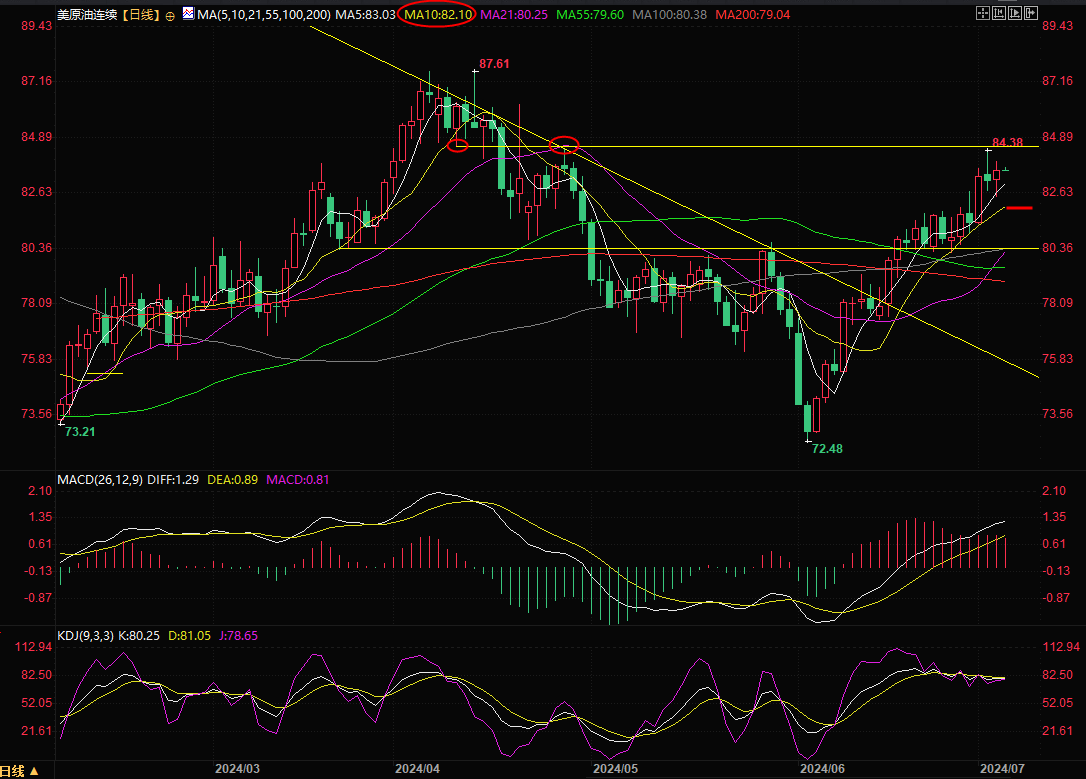 美原油主力合约日线图,来源:易汇通)