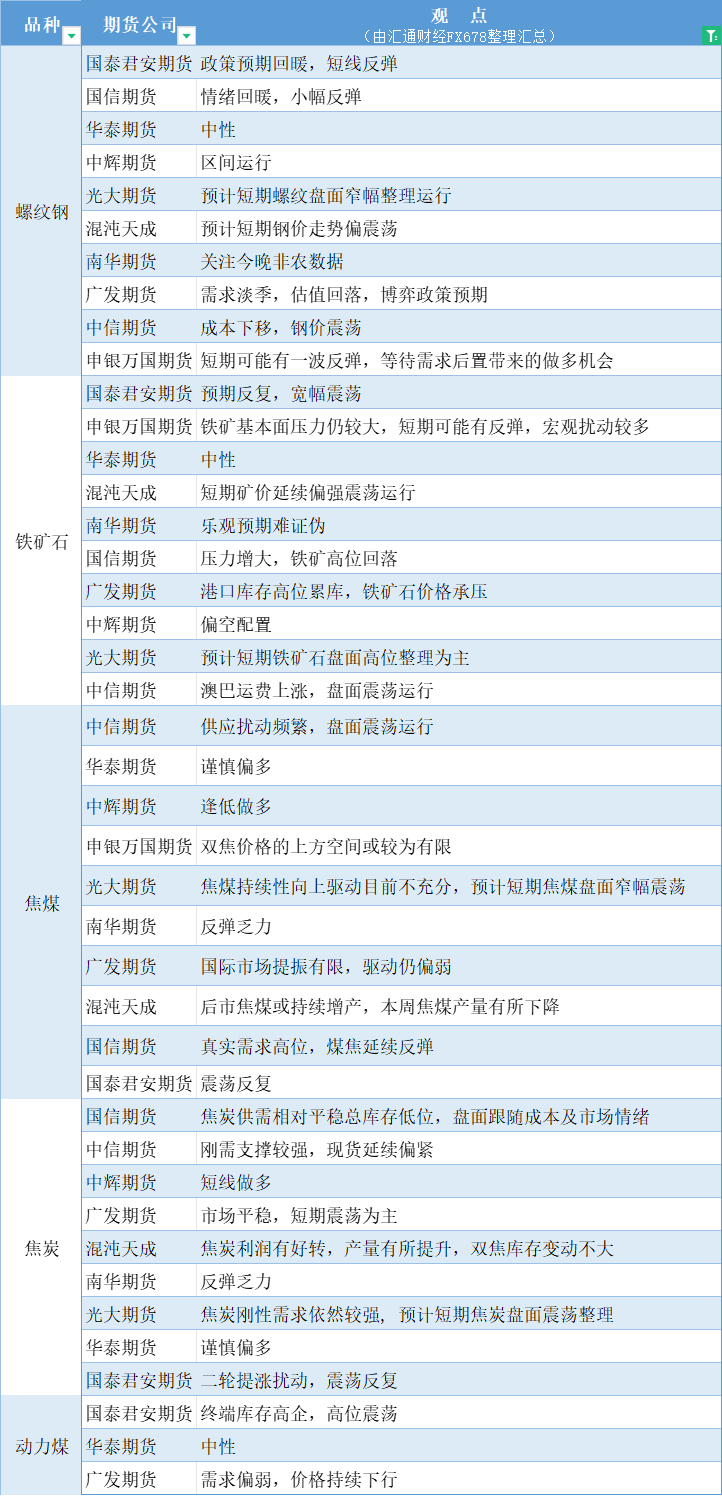 标题:期货公司观点汇总一张图:7月5日黑色系(螺纹钢、焦煤、焦炭、铁矿石、动力煤等)
