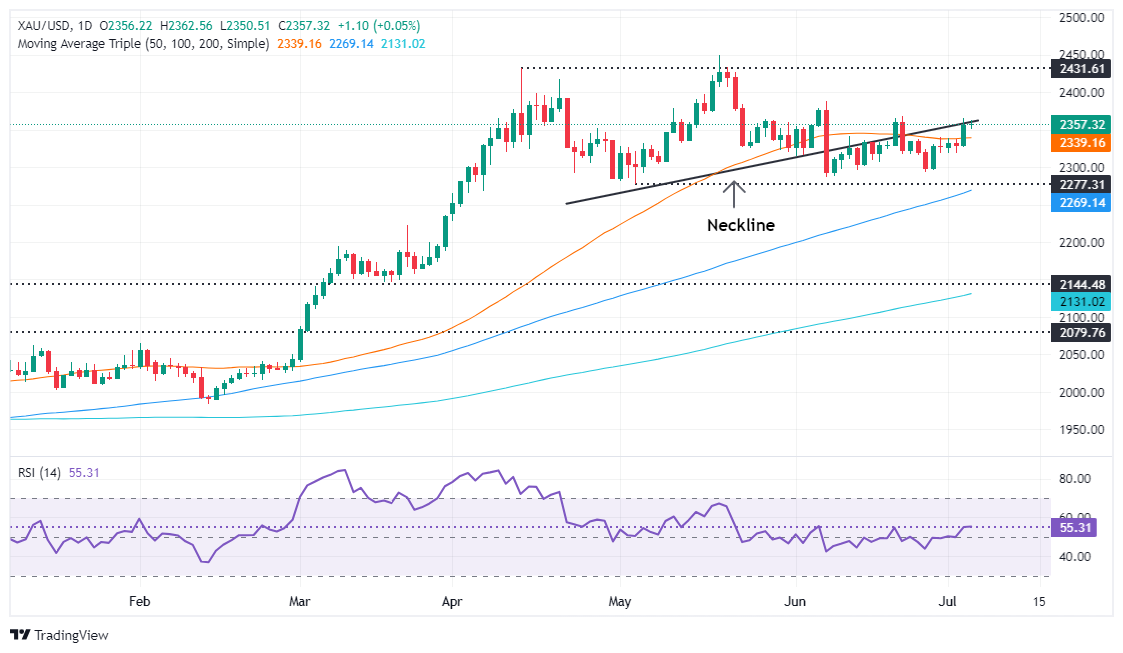 Valencia指出,由于金融市场成交量清淡,金价周四盘整。尽管黄金仍然看涨,但从2024年4月开始形成的头肩形态正在发挥作用。