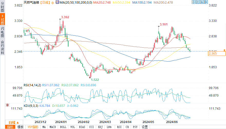 汇通财经APP讯——周五(7月5日)欧盘时段,美国天然气盘中报2.361美元/百万英热,跌幅2.35%。美国天然气价格连续第9天下跌,调整时长几乎与2月份的10天相当。