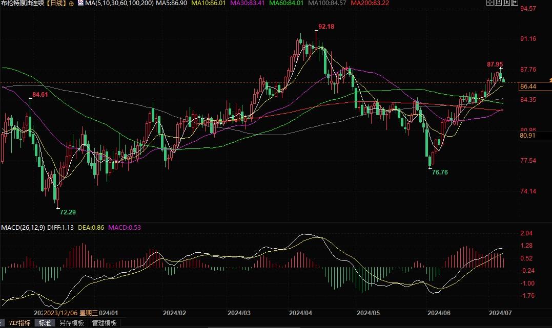 布伦特原油报86.43美元/桶