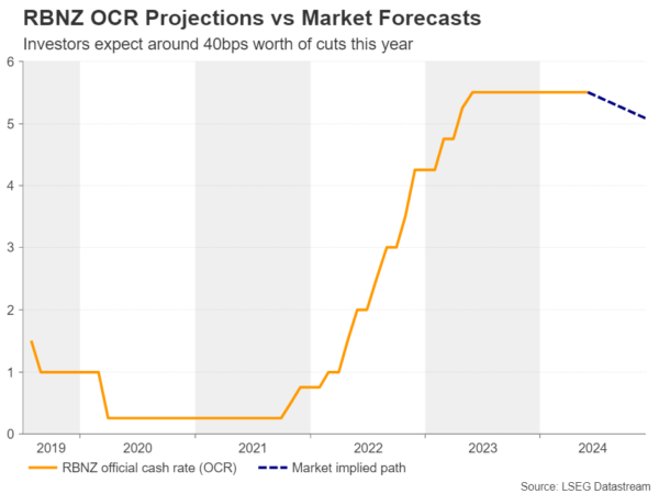 然而,投资者预计到今年年底降息幅度将略高于40个基点。由于新西兰联储几乎没有理由转向不那么鹰派的立场,重申5月份的信息可能会促使投资者缩减降息押注,从而提振纽元的表现。