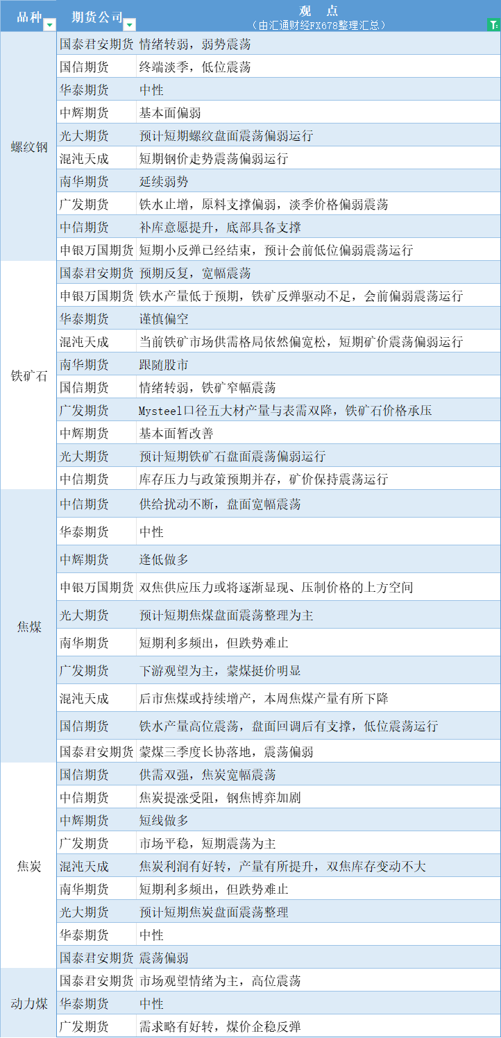 标题:期货公司观点汇总一张图:7月10日黑色系(螺纹钢、焦煤、焦炭、铁矿石、动力煤等)