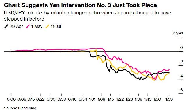 周四的飙升与今年之前的干预有相似之处,当时日本财务省在4月29日和5月1日买入9.8万亿日元,以遏制明显的波动。日元周四创下5月1日以来最大单日升幅。