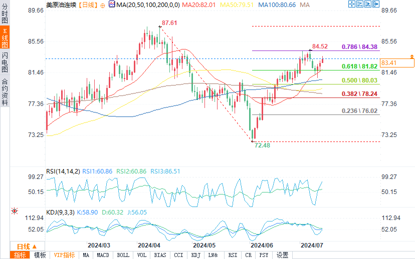 在本周开盘承压之后,尾盘反弹已使WTI原油价格接近上周触及的84.52美元高点。最初,该水平可能提供阻力,但突破该水平可能引发油价飙升至4月高位86.24美元。