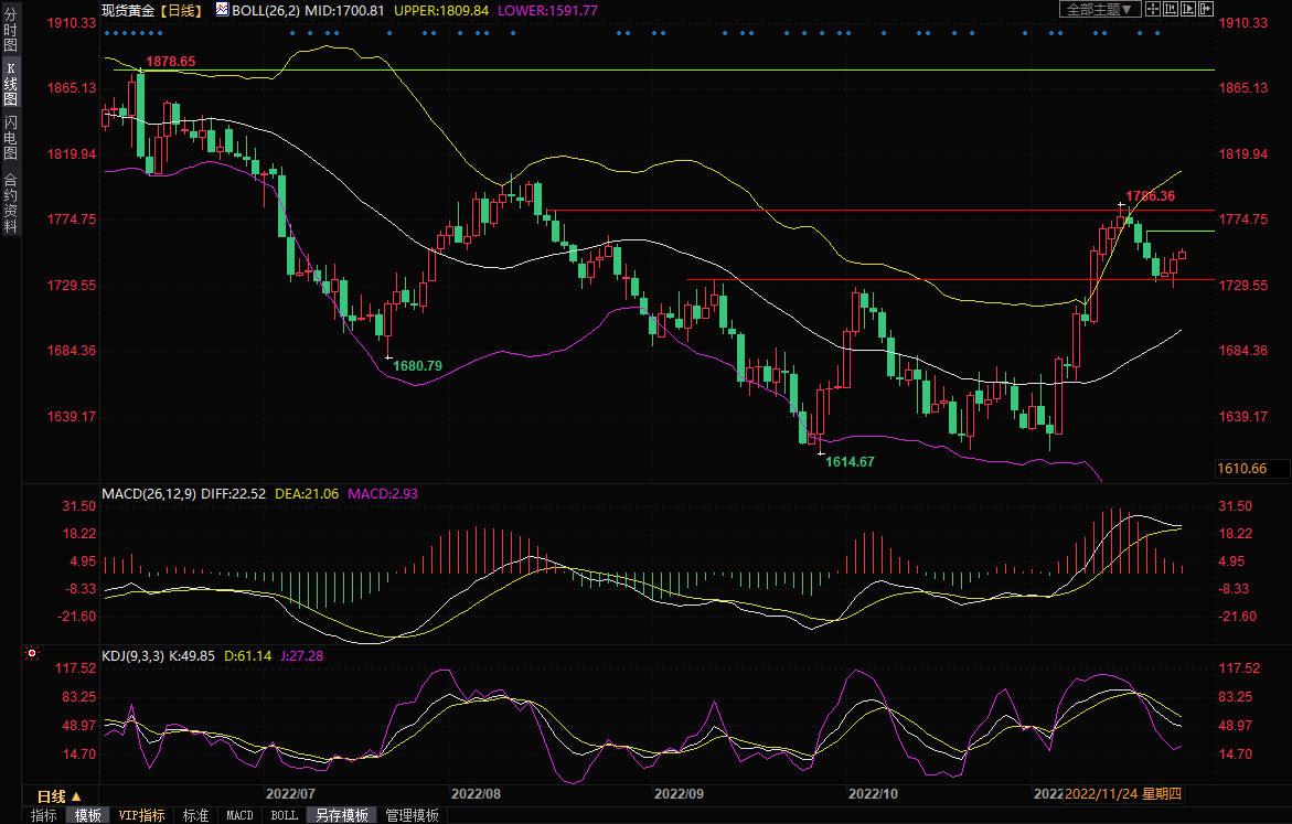 现货黄金震荡上涨,一度创三个交易日新高至1755.19美元/盎司,延续了隔夜的涨势。周三金价探底回升,尽管美国10月耐用品订单数据表现强劲,金价一度跌至1728.37美元/盎司附近,但随后快速回升,收报1749.22美元/盎司,一方面,周三数据显示,欧元区、英国、美国11月份PMI数据表现都比较差,加剧了全球经济衰退担忧,给金价提供避险支撑。另一方面,美联储会议纪要表明将“很快”放慢加息步伐,美元跌至逾一周低位,给金价提供上涨动能。