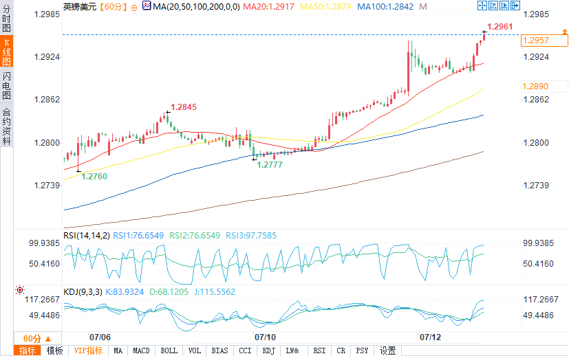 汇通财经APP讯——周五(7月12日)欧盘时段,英镑/美元在1.2900阻力位上方加快上行。欧元/英镑下跌,目前正在0.8400区域上方盘整亏损。