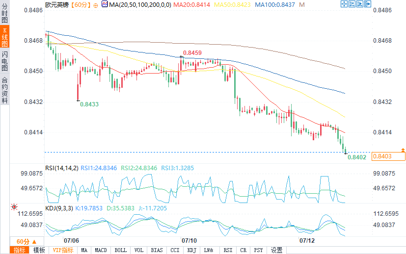 (欧元/英镑小时图 来源:易汇通)