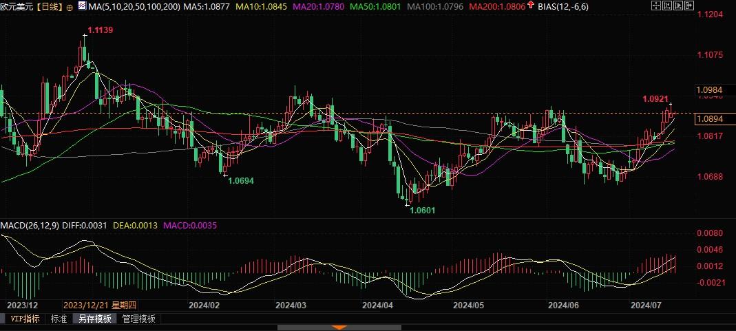 欧元兑美元日线图