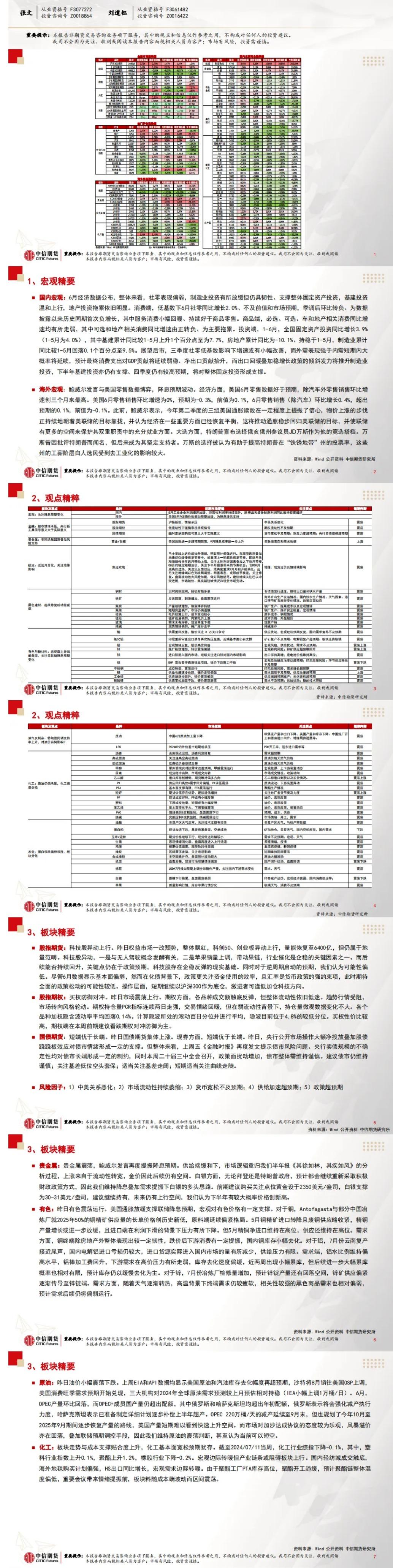 标题:中信期货7月17日晨报:鲍威尔发言与美国零售数据博弈,商品夜盘开盘涨跌不一