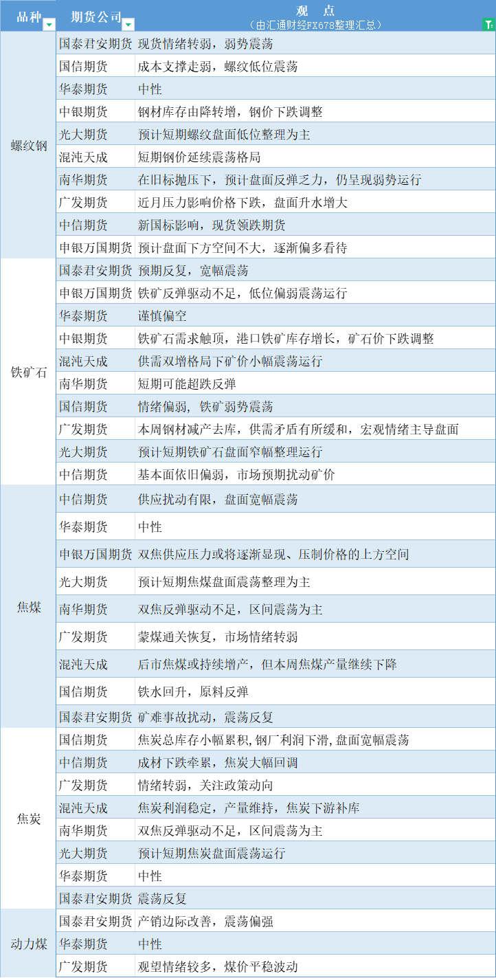 期货公司观点汇总一张图:7月19日黑色系(螺纹钢、焦煤、焦炭、铁矿石、动力煤等)