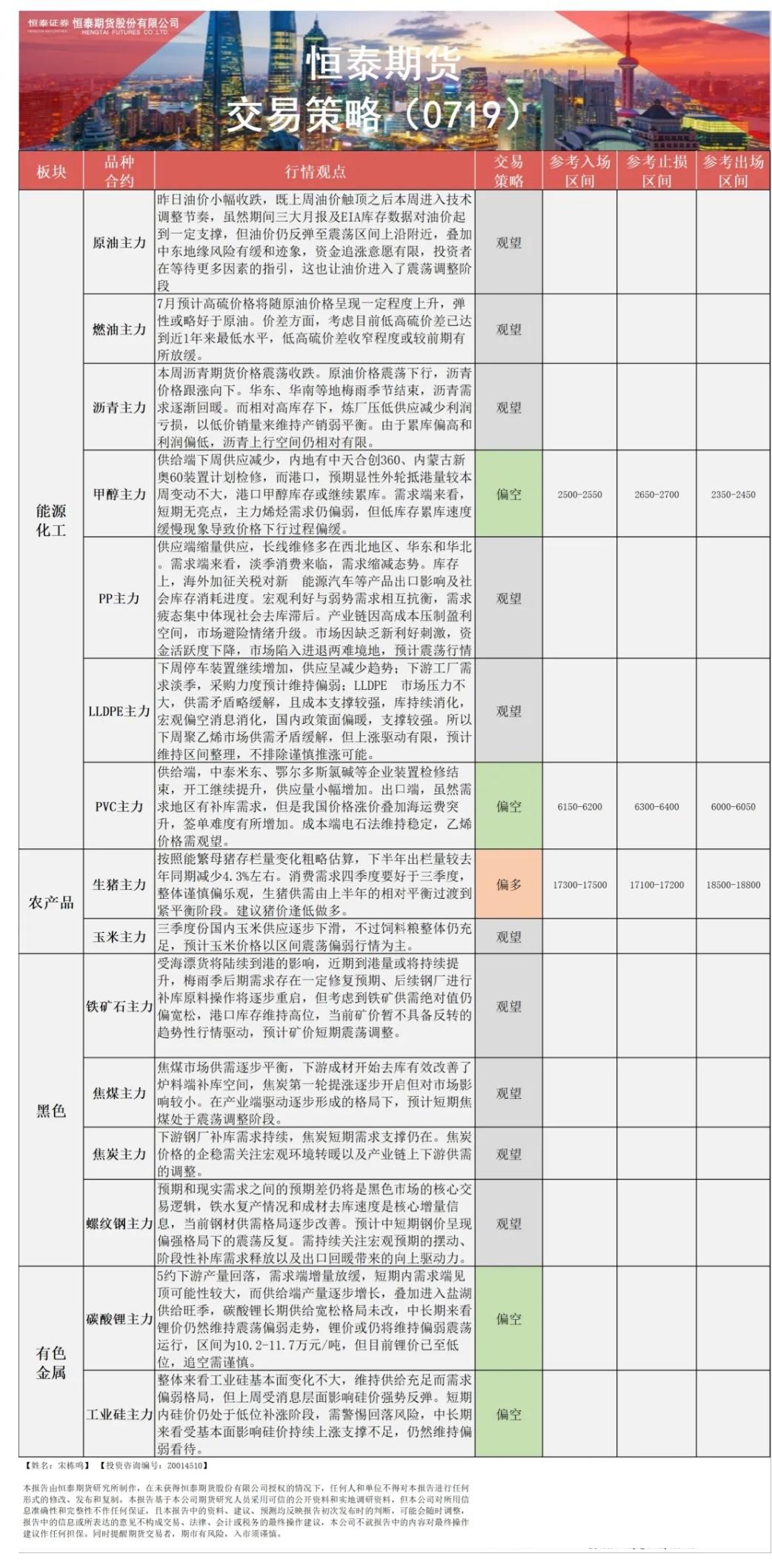 标题:【恒泰早报】7月19日恒泰期货交易策略
