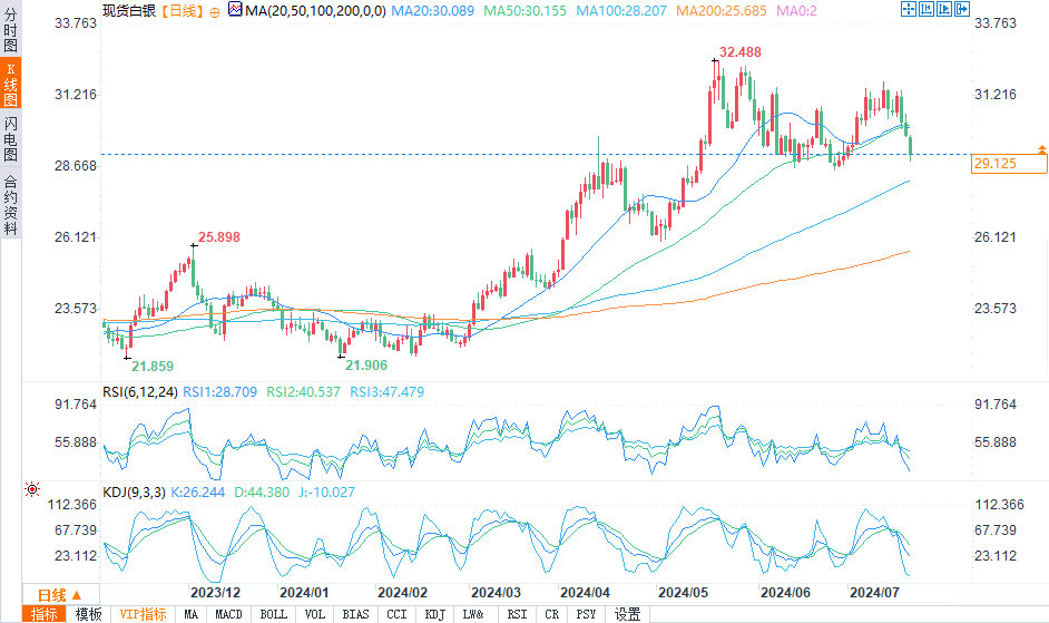 现货白银报29.125美元/盎司,跌幅2.27%。