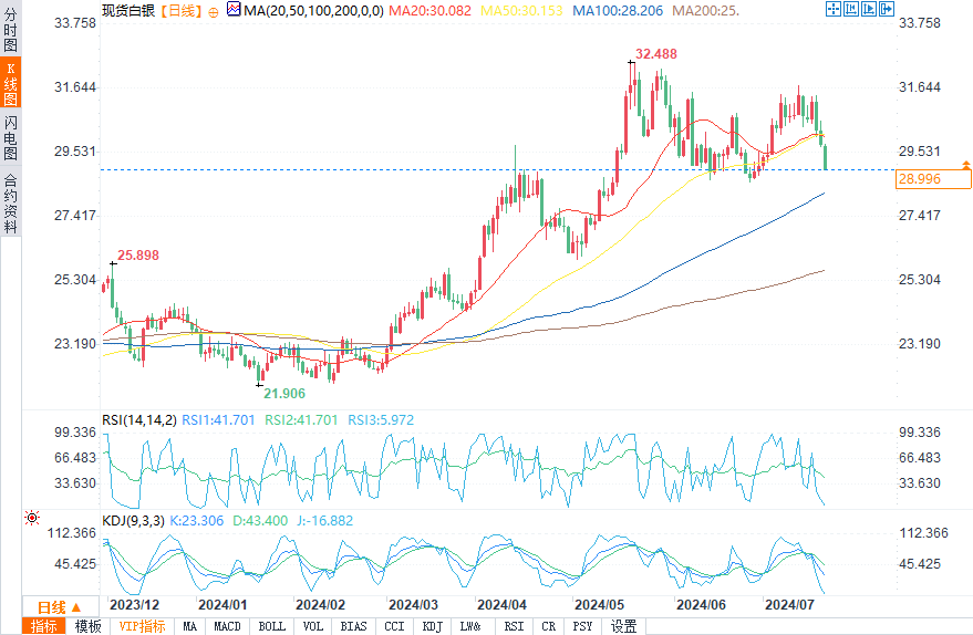 标题:白银技术分析:银价下跌至30以下,抹去了6月份的涨幅
