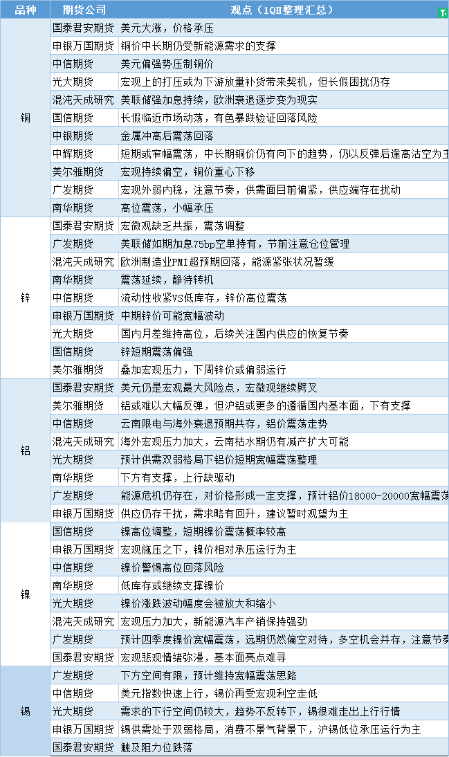 标题:期货公司观点汇总一张图:9月26日有色系(铜、锌、铝、镍、锡等)