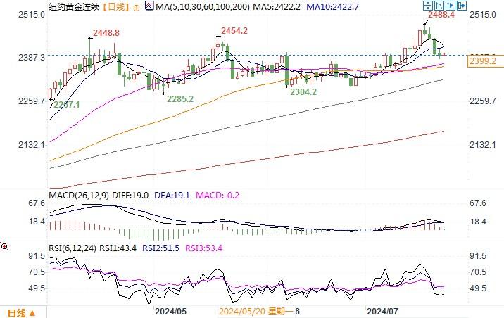 汇通财经APP讯——黄金期货周一(7月22日)小幅下跌,8月合约结算价略低于每盎司2400美元的重要关口。周二亚市,