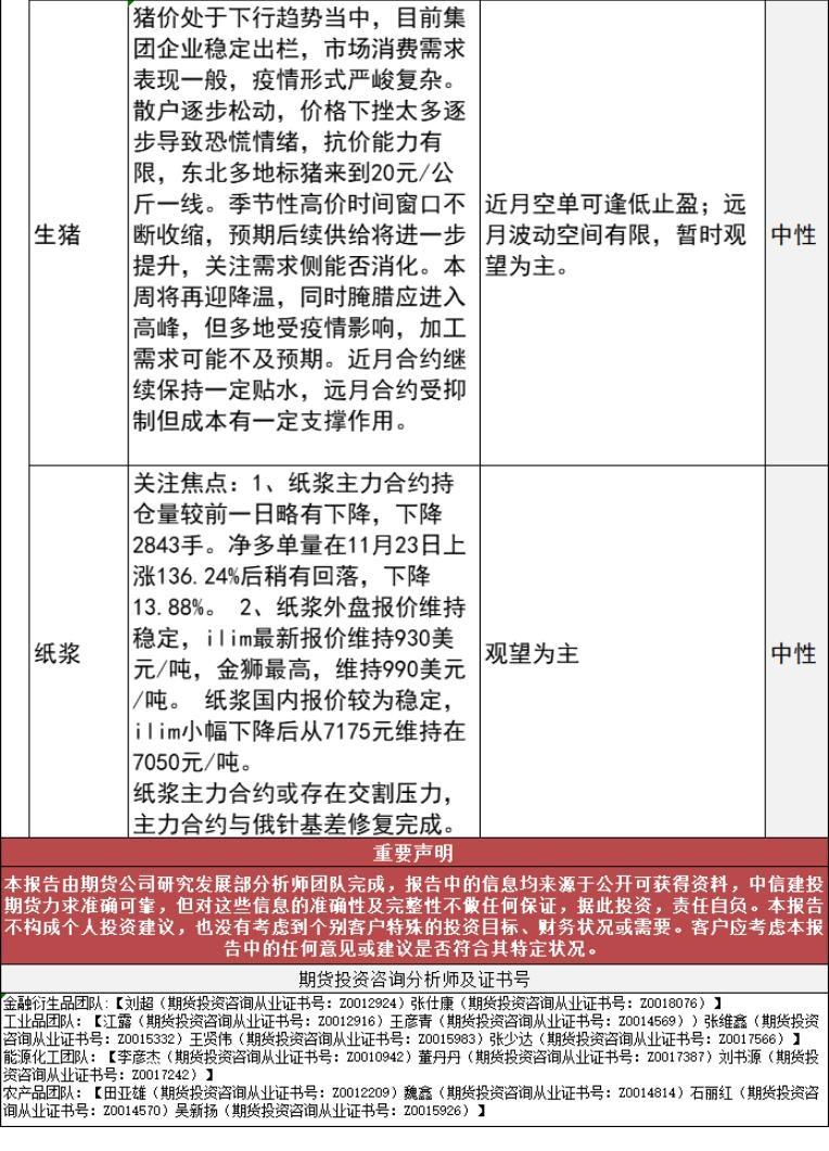 标题:中信建投期货11月25日早间交易策略