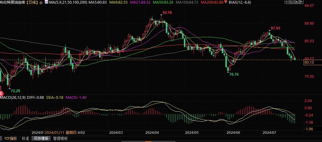 布伦特原油价格下跌。