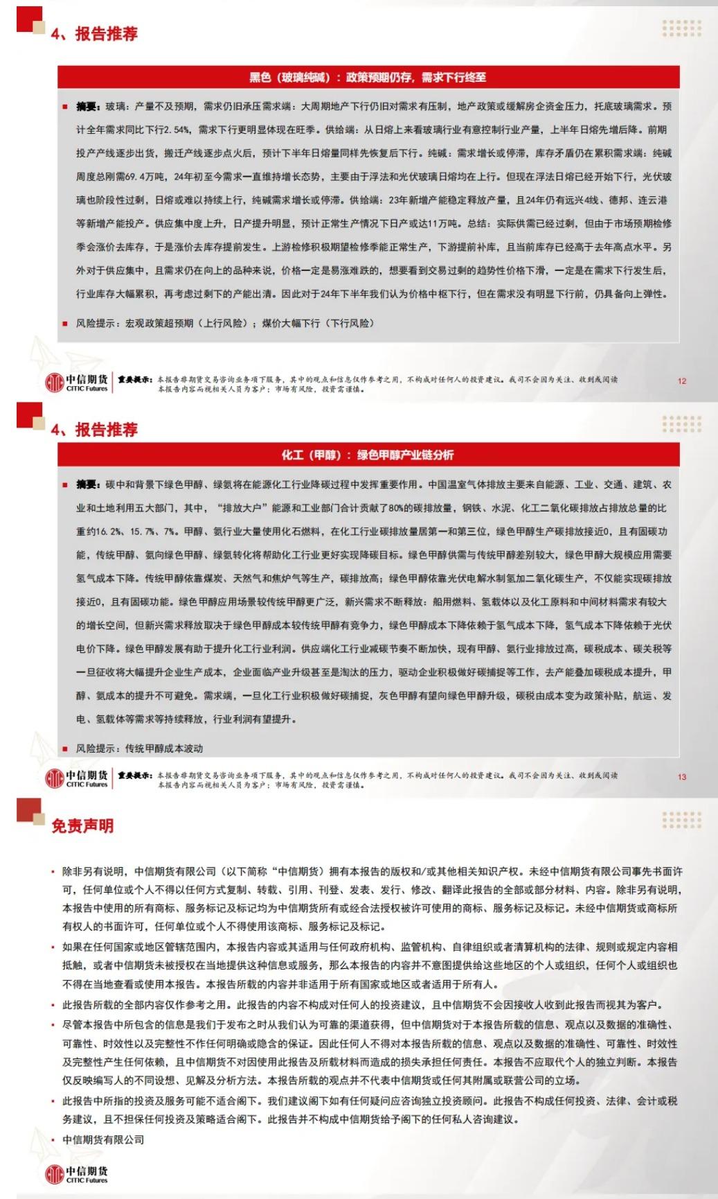 以下为中信期货今日晨报对股指、国债、贵金属、原油能源化工、有色金属、螺纹钢材焦炭黑色系玻璃纯碱等建材、玉米生猪油脂蛋白粕等农产品等期货的操作建议和提醒。