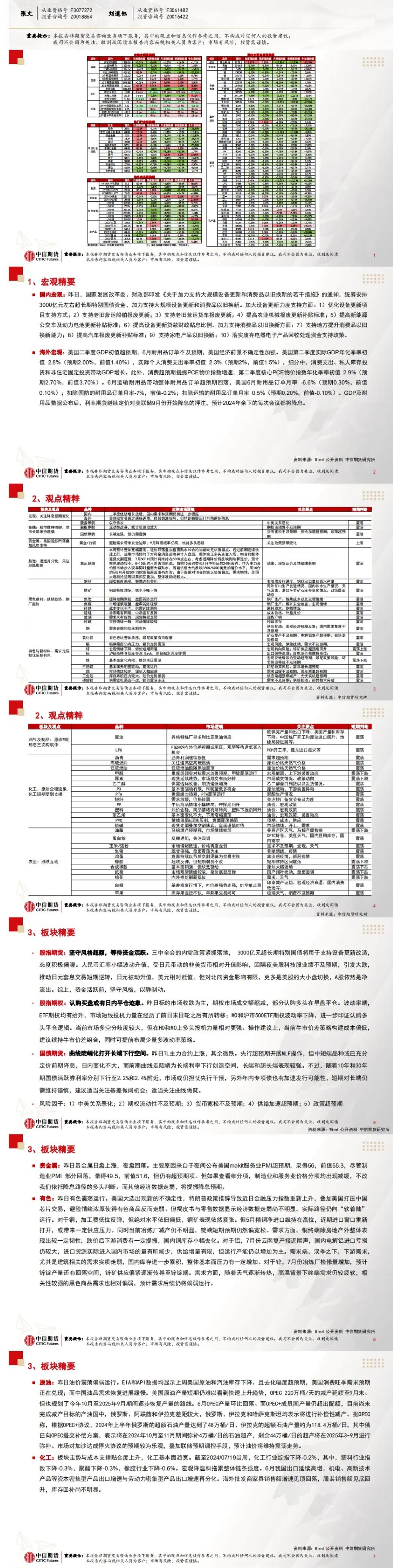 标题:中信期货7月26日晨报:美国二季度GDP初值超预期,市场情绪再度走弱,有色、贵金属板块集体回调