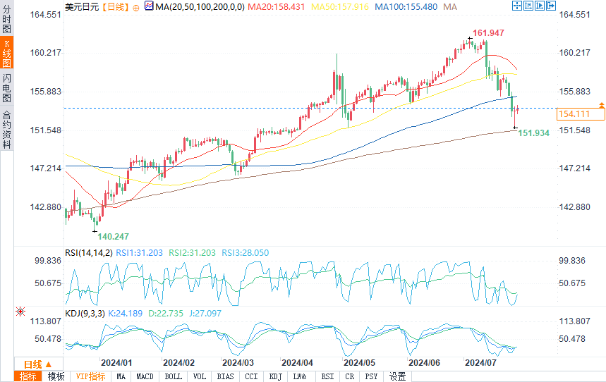 北京时间周五(7月26日)17:50,澳元/美元报0.6558/59,涨幅0.32%。英镑/美元报1.2868/69,涨幅0.14%。美元/日元报154.152/165,涨幅0.15%。