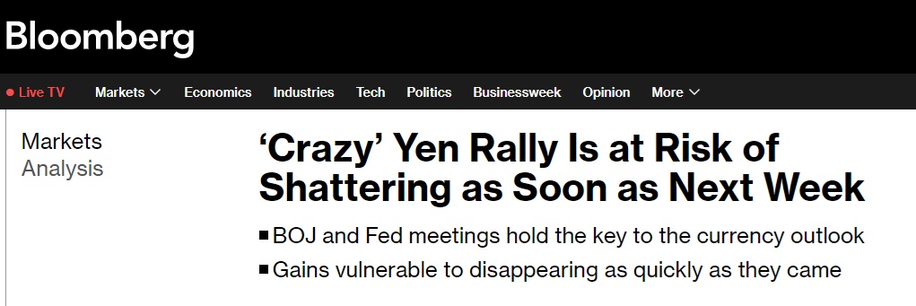 日元这波暴涨是否真正成为日元大逆转的开端,将取决于下周日本央行和美联储的利率决定。