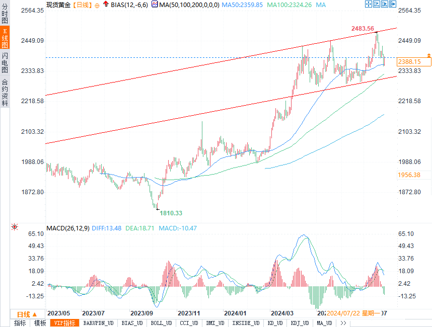 本周初,黄金价格经历了一定程度的下跌,主要受到市场对美联储降息预期的不确定性影响。然而,随着美国6月个人消费支出(PCE)物价指数的发布,仅小幅上涨的数据增强了市场对美联储9月降息的预期,金价因此得到提振。周五,金价大幅上涨,收复了周初的失地。