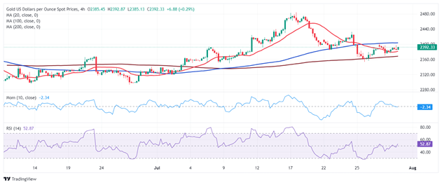 Bednarik补充道,在短期内,根据4小时走势图,黄金前景中性至看涨。金价目前高于6月-7月反弹走势的50%斐波那契回撤位2388.25美元/盎司。技术指标已在积极水平内小幅回升,使金价走势风险偏向上行。