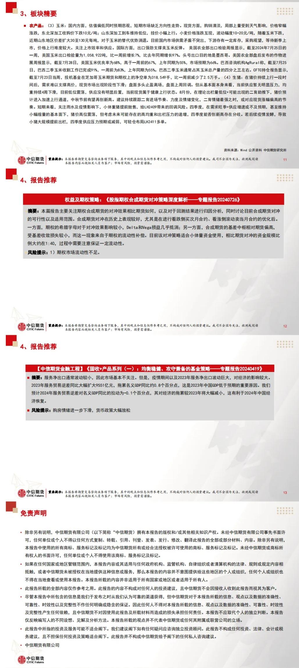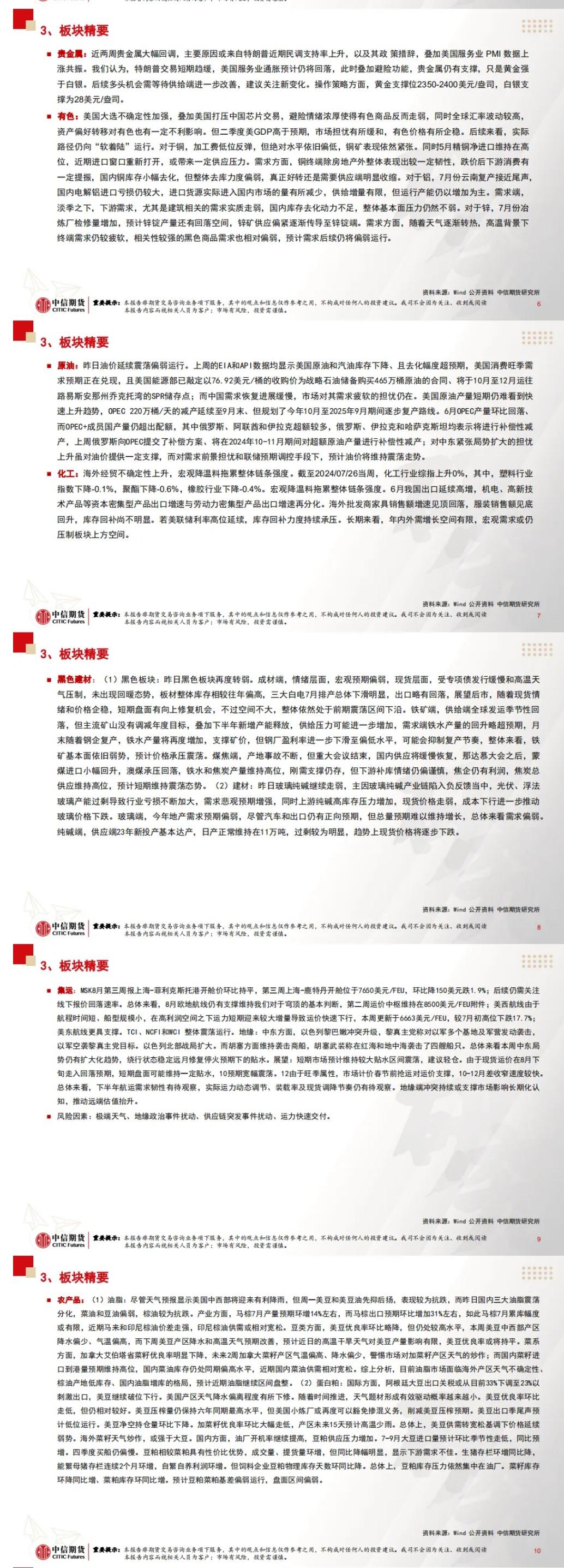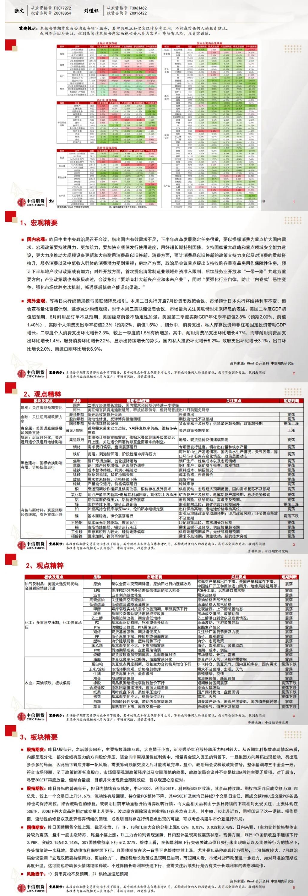 标题:中信期货7月31日晨报:政治局会议指出国内需求不足,黑色板块走弱