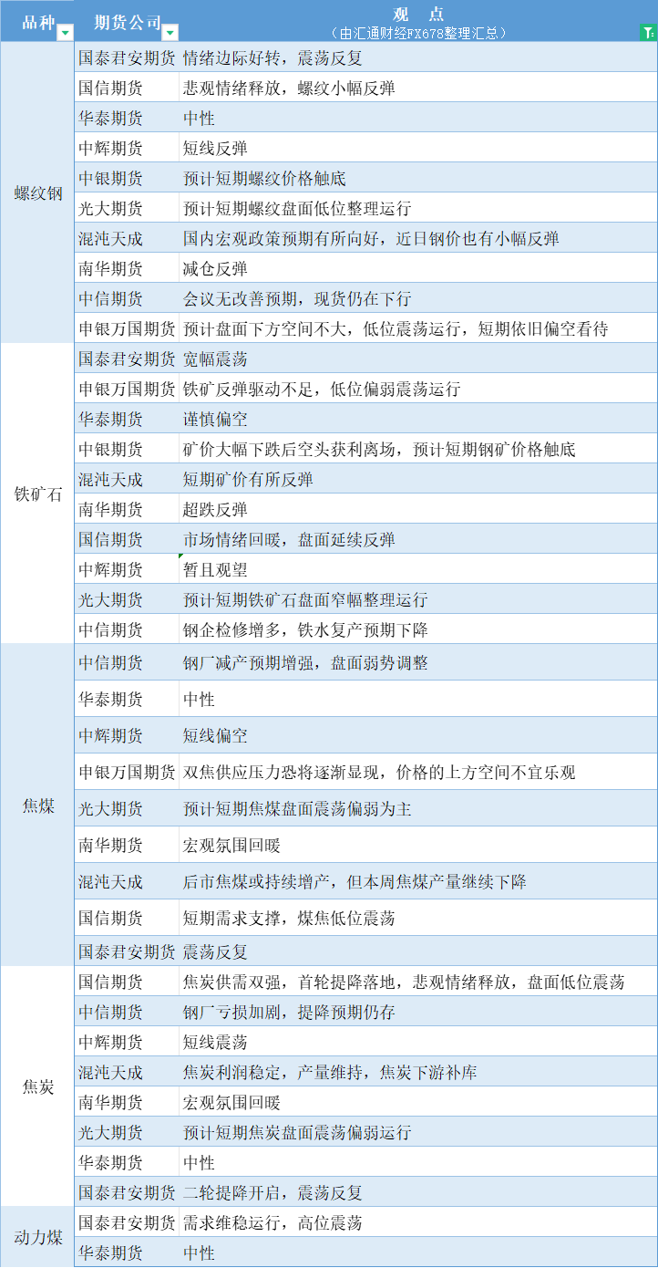 标题:期货公司观点汇总一张图:8月1日黑色系(螺纹钢、焦煤、焦炭、铁矿石、动力煤等)