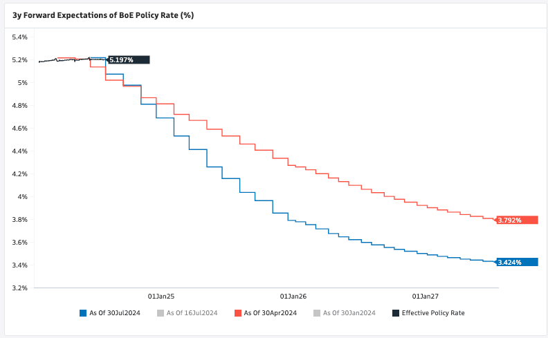 汇通财经APP讯——北京时间8月1日(周四)19:00,英国央行将举行利率决议。从隔夜指数掉期市场收集到的货币市场定价显示,目前降息的可能性超过60%,这个比例高于本月早些时候的40%。