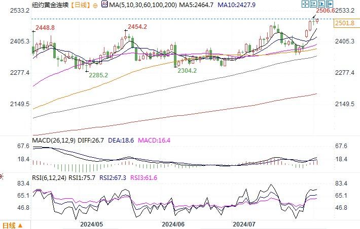 COMEX黄金期货价格一度突破每盎司2500美元,最高触及2506.6美元/盎司,但一些分析人士表示,金价在中期已被完全消化。
