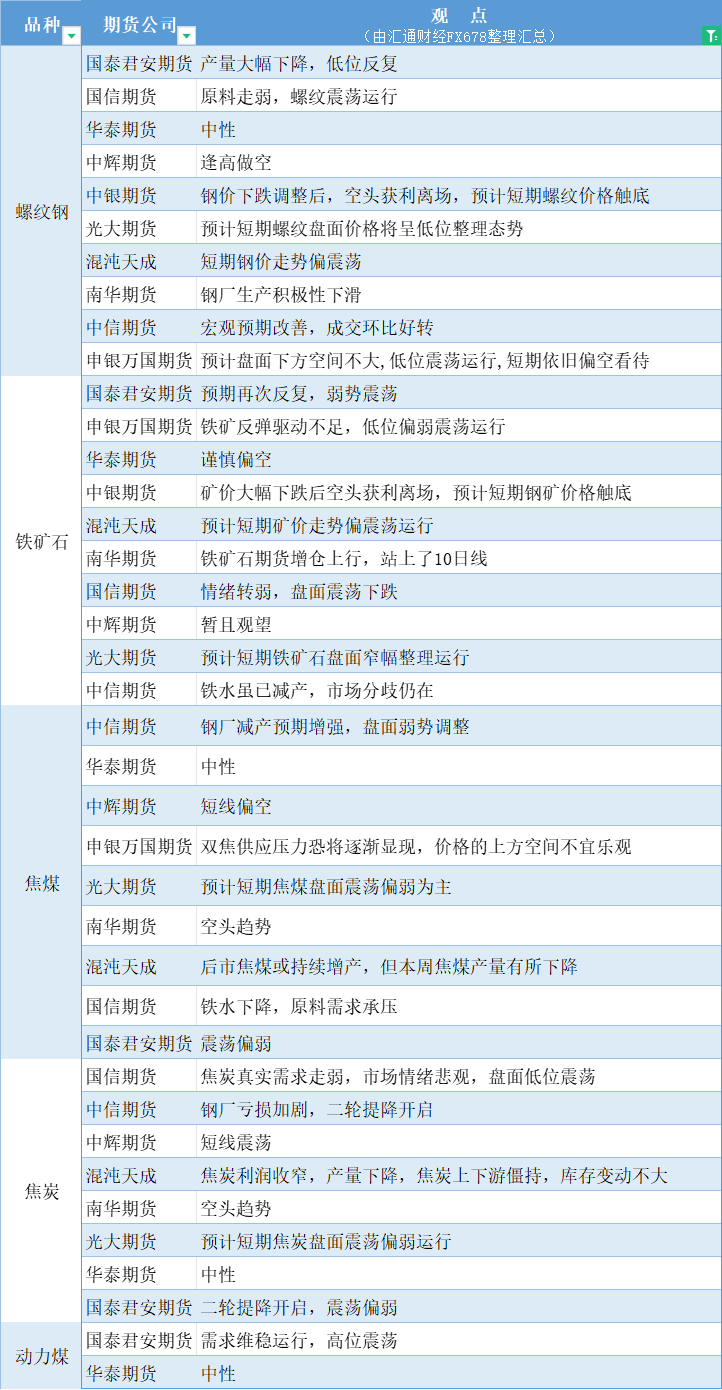 标题:期货公司观点汇总一张图:8月2日黑色系(螺纹钢、焦煤、焦炭、铁矿石、动力煤等)